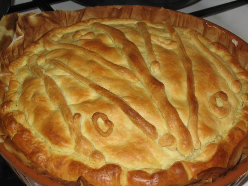 Pour une portion de 4 personnes, il vous faut 2 pâtes feuilletées, 4 escalopes de poulet, 1 pot de crème fraîche, 250 g de champignons frais, de la ciboulette, des épices de poulet, du sel, du poivre, et du persil haché. Coupez les escalopes en dés, saupoudrez-les d’épices, et faites-les revenir dans une poêle. Après avoir nettoyé les champignons, faites-les rissoler dans un poêle, saler, et poivrer. Mélangez ces deux préparations et saupoudrez de persil et de ciboulette. Ajoutez ensuite la crème, laissez mijoter, et ajoutez du persil. Étalez la pâte feuilletée dans un moule, piquez avec une fourchette, ajoutez la préparation, et étalez la seconde pâte feuilletée.