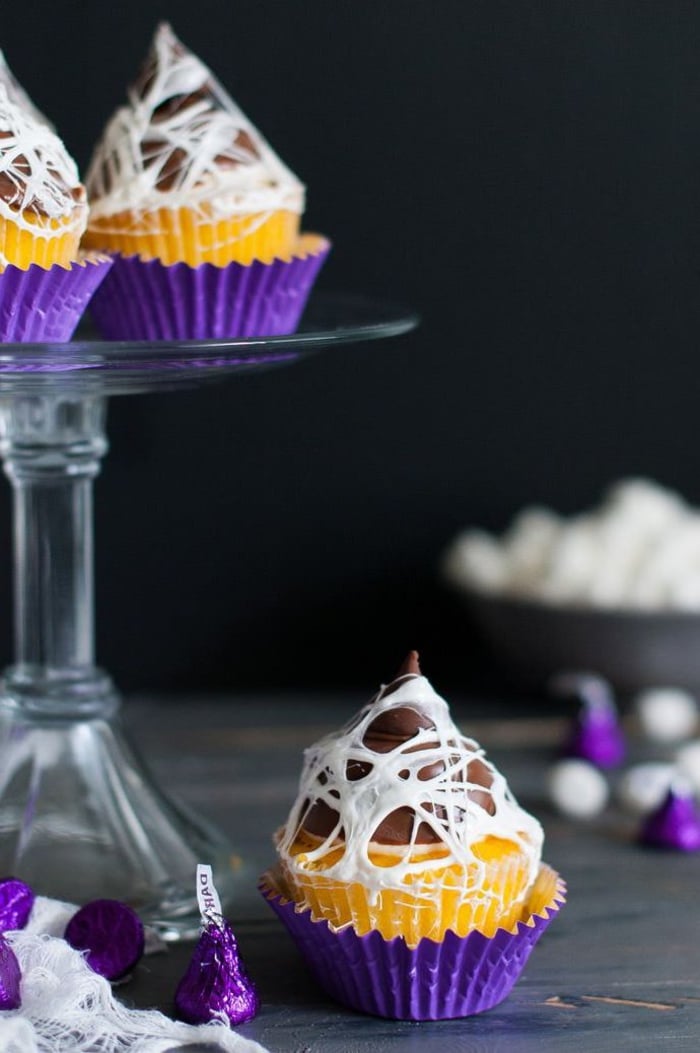 Cupcakes toile d’araignée à la guimauve fondue : le détail qui change tout.