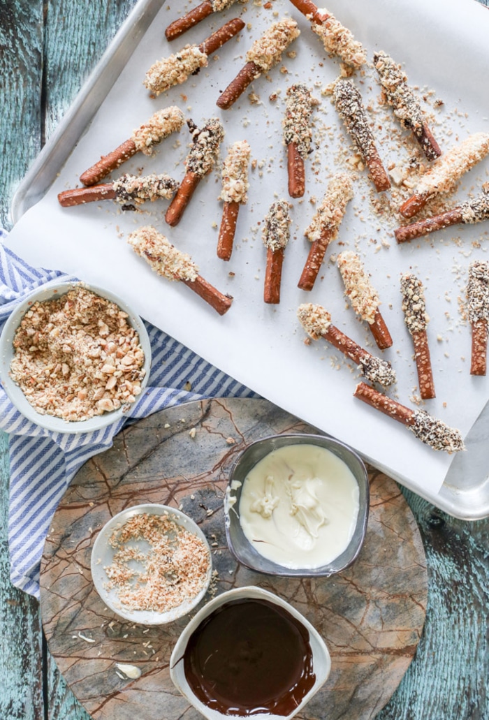 - Enrobez une partie des biscuits de ce chocolat fondu à l’aide d’une cuillère.