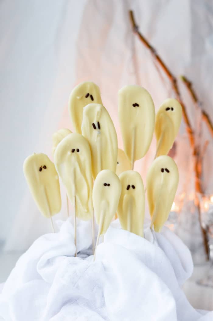 Sucettes fantômes au chocolat blanc : une touche sucrée et rigolote.